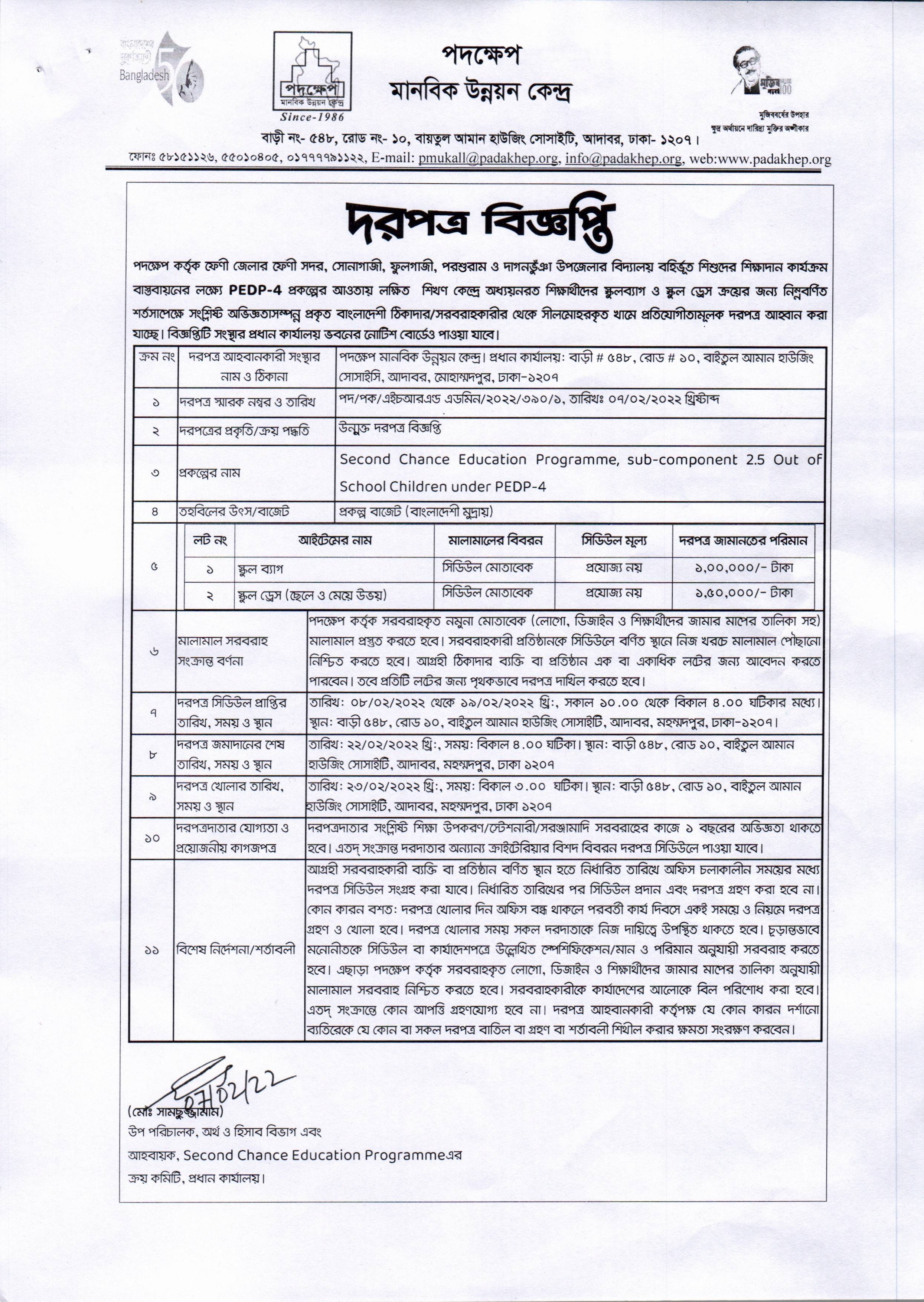 Second Chance Education Programme, sub-component 2.5 Out of School Children under PEDP-4 |